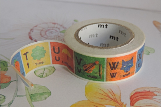 masking-tape mt© 15 mm x 7 meters.Kamoï Kakoshi Co. ltd. Okayama. Japan.le masking-tape "for kids©" est un ruban adapté à la main de l'enfant. Les motifs développent une pédagogie visuelle et ludique.